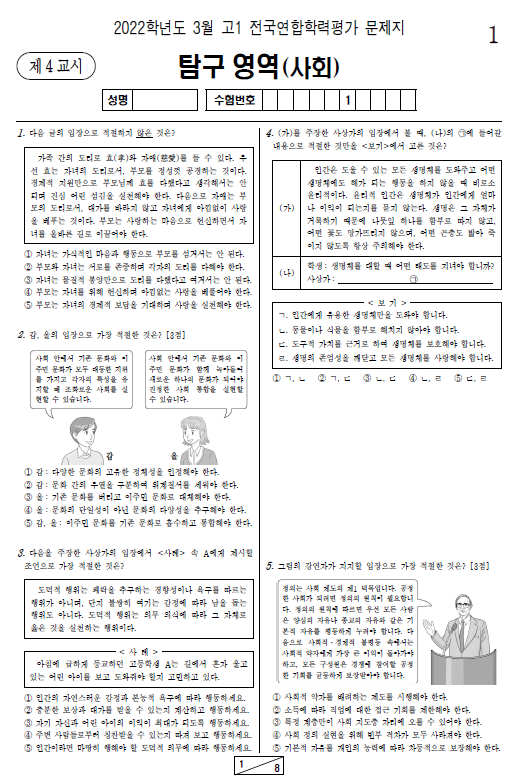 2022학년도 3월 고1 통합사회 모의고사 기출문제 미리 보기